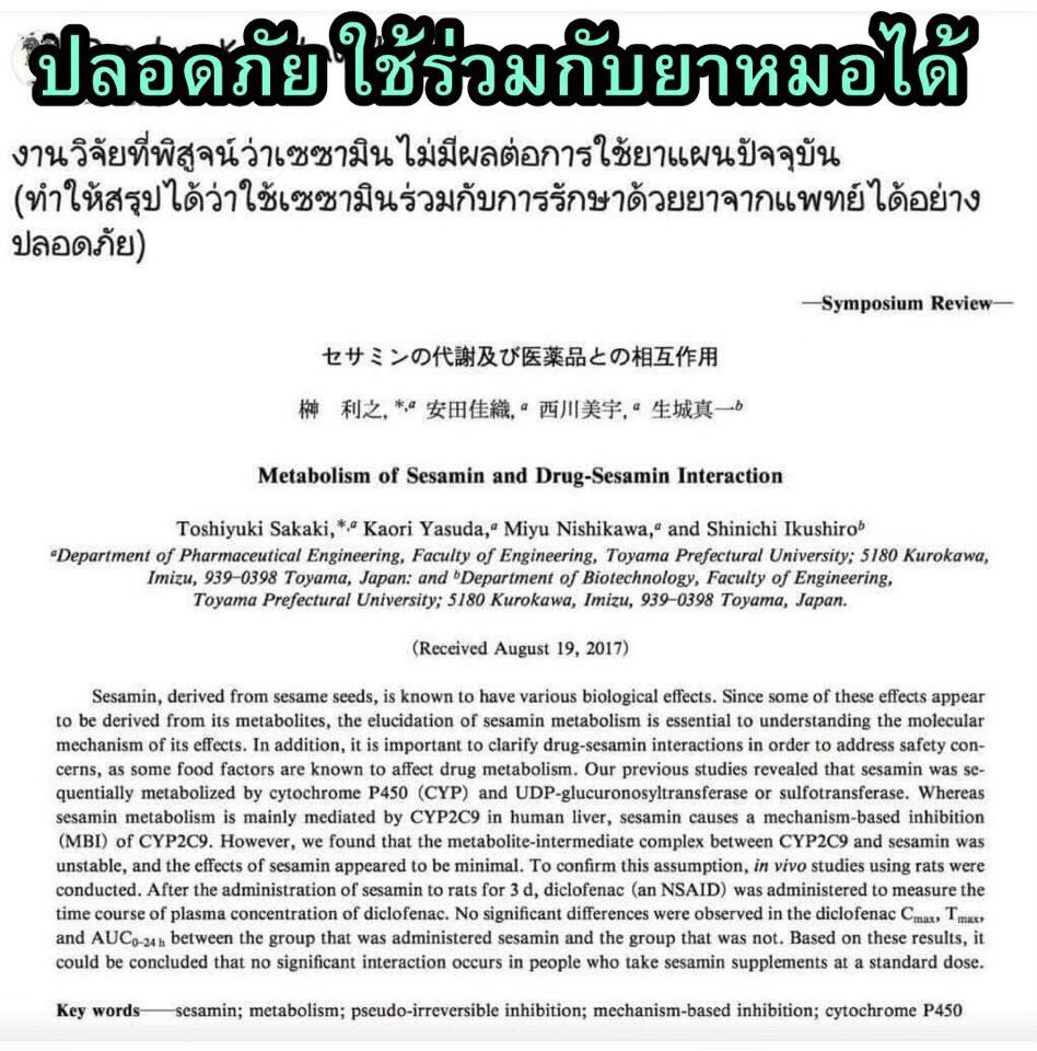 >>ใช้เซซามินร่วมกับยารักษาของหมอ💊ได้อย่างปลอดภัย<<