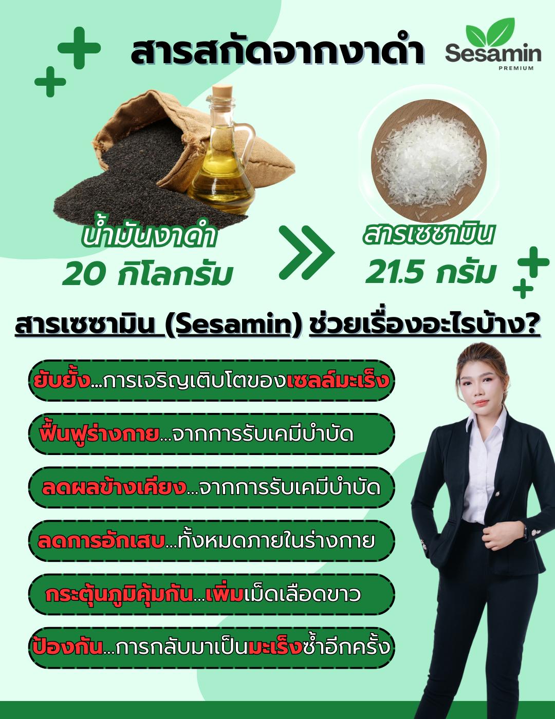 🌱งาดำเป็นพืชที่นิยมทานเป็นอาหารมามากกว่า 4,000 ปีนอกจากนั้นยังค้นพบว่าในงาดำมีสารที่มีคุณสมบัติออกฤทธิ์ทางเภสัชวิทยา ซึ่งมีรายงานการศึกษาวิจัยทั่วโลกทั้งในระดับโมเลกุลและในคนเป็นสารกลุ่มที่เรียกว่า ลิกแนน (Lignan) ชื่อทางการเรียกว่า สารเซซามิน (Sesamin) เป็นสารสกัดจากงาดำเป็นสูตรที่ดีที่สุด เป็นธัญพืชมหัศจรรย์ เป็นของขวัญจากธรรมชาติจากเมล็ดงาเม็ดเล็กๆที่อุดมไปด้วย